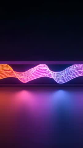 Looping Neon Ribbon Waveform Flowing Over Violet Gradient For Vertical Mobile Motion Backgrounds Videos