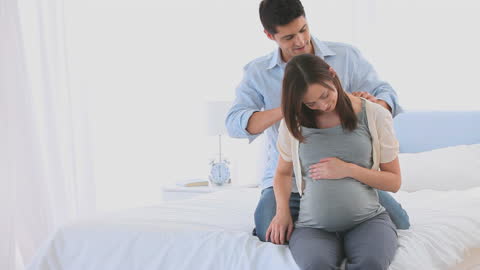 Loving Husband Returning Home To Join Expecting Wife On Sofa Videos
