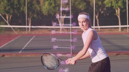 Male Tennis Player Analyzing Performance With Data Technology Videos