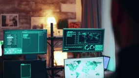 Man Analyzing Coding Data With Multiple Interfaces Videos