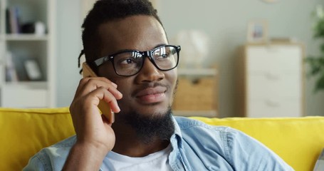 Man Cheerfully Conversing On Smartphone While Relaxing Videos