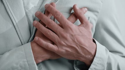 man clutching chest