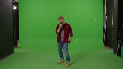 Man Dancing And Singing On Green Screen Background Videos