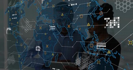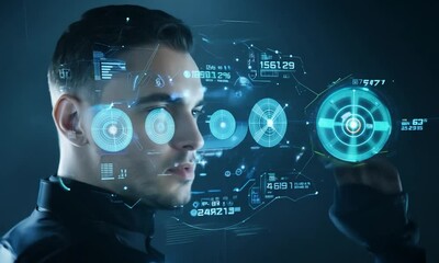 Man Engaging With Global Data Interface Overlay Videos