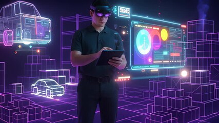 Man Engaging With Tablet For Virtual Display Interaction Videos
