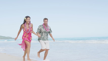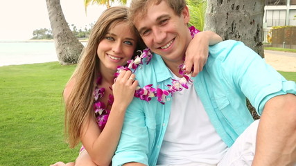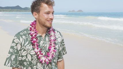 Man Enjoying Sunny Beach Vacation With Flower Lei Videos