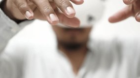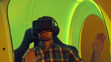Man Experiencing Virtual Reality With Advanced Vr Headset Videos
