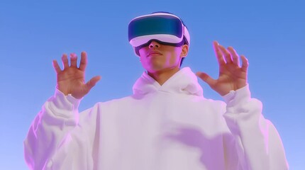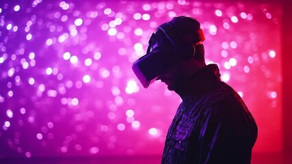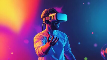 Man Experiencing Virtual Reality With Vr Headset In Gradient Light Videos