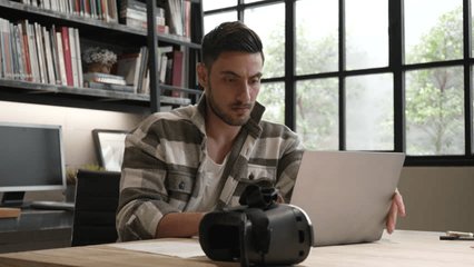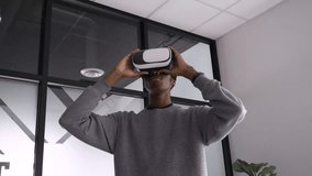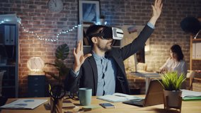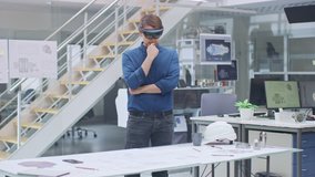 Man Interacting With Virtual Interface Using Vr Headset And Stylus In Office Vertical Video Videos