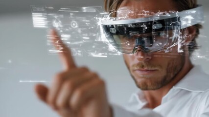 Man Interacting With Virtual Screen Concept On White Background Videos