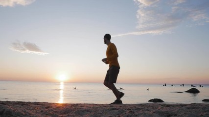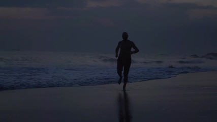 Man Jogging On Beach In Silhouette At Sunrise Videos