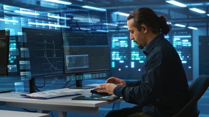 Man Multitasking With Augmented Digital Network Interface Videos