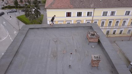 Man Practicing Parkour On Rooftop Against Mountainous Backdrop Videos