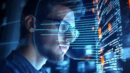 Man Thinking By Virtual Screen Focus On Innovation Technology Videos
