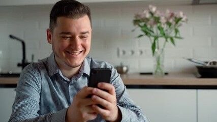 Man Typing Text Message On Smartphone In Kitchen Videos