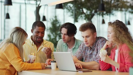 Man Using Laptop In Cafe With Snack Enjoying Work Videos