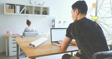 Man Using Laptop With Digital Network Overlay Videos