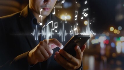Man Using Smartphone With Digital Connections Overlay Videos