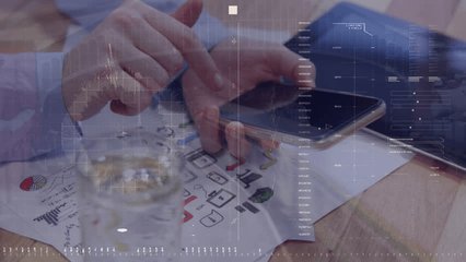 Man Using Smartphone With Digital Overlay Icons And Data Videos