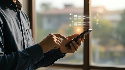 Man Using Smartphone With Digital Profile Data Connections Videos