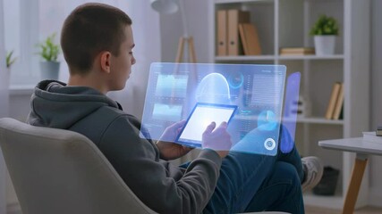 Man Using Smartphone With Holographic Data And Analytics Videos