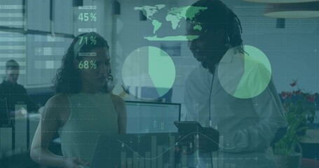 Man Using Tablet With Financial Data Analysis Overlay Videos