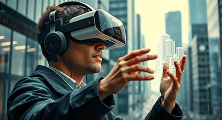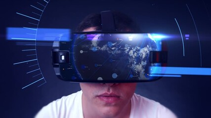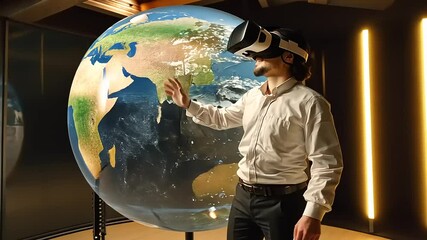 Man Using Vr Headset Interacting With Digital Globe Videos
