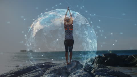 Man Walking Into Ocean With Digital Globe Overlay Concept Videos