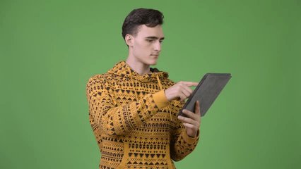 Mature Man Engaging With Digital Tablet And Cloud Network Videos