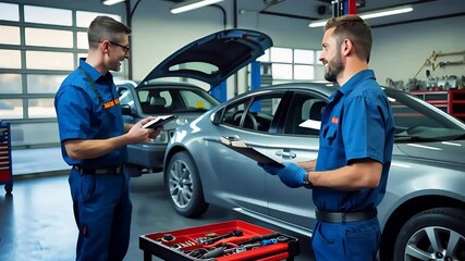 Mechanic Analyzing Repairs With Checklist In Auto Workshop Videos