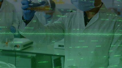 Medical Professionals Analyzing Data With Scientific Graphics Overlay Videos