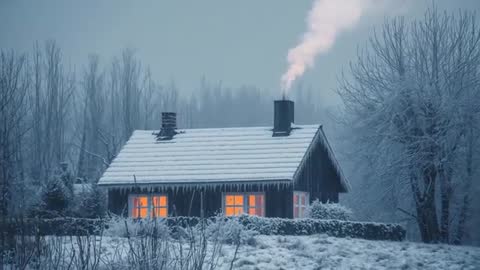 snowy cabin