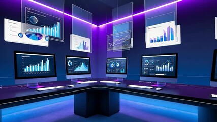 Modern Data Center With Real Time Analytics Displays Videos