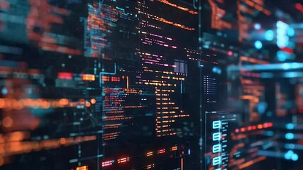 Modern Data Servers With Digital Interface Lights In Blue Videos