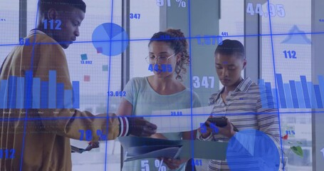 Modern Office Team Analyzing Data With Graph Overlay Videos