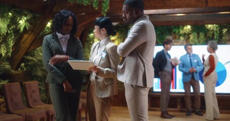 Multicultural Colleagues Analyzing Data On Tablet In Modern Office Videos