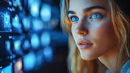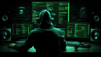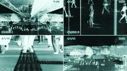 Multiple Security Cameras Analyzing Digital Data And Graphics Videos