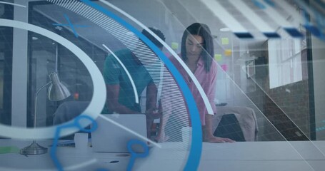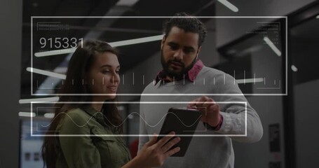 Multiracial Business Team Analyzing Data With Digital Overlay Videos