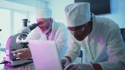 Multiracial Scientists Analyzing Data In Modern Laboratory Videos