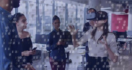 Multiracial Team Collaboration With Urban Skyline Overlay Videos