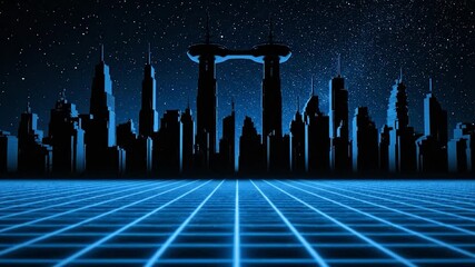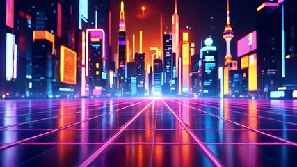 Neon Cyberpunk Cityscape With Grid Foreground Videos