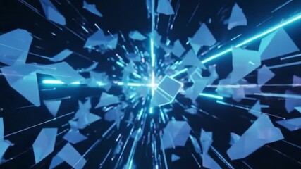 Neon Data Streams Exploding In Futuristic Tunnel Animation Videos