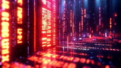 Neon Digital Landscape With Data Visualization Elements Videos