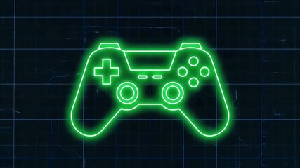 Neon Game Controller With Network Grid Background Videos
