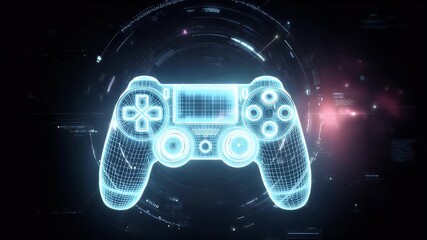 Neon Gaming Control Icon On Abstract Pattern Background Videos