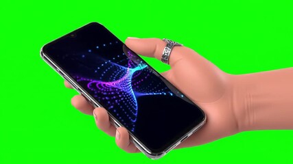 Neon Hand Holding Smartphone With Futuristic Digital Abstract Videos