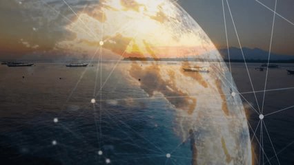 Network Connections Over Ocean At Sunset Videos