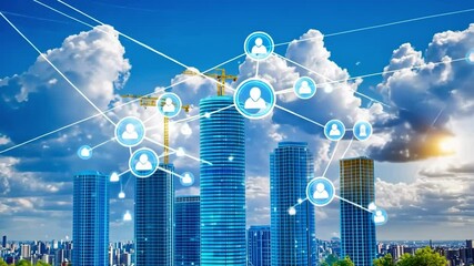Network Connections Overlaying Blue Sky With Clouds Videos