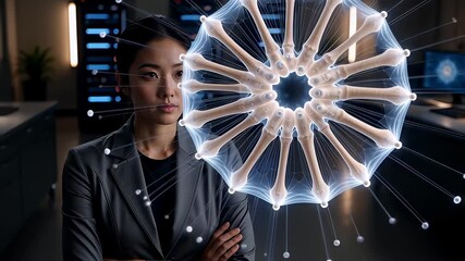 Network Engineer Analyzing Holographic Interfaces Near Servers Videos