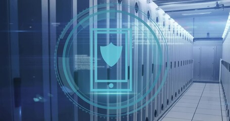 Network Security Icon Overlay On Digital Servers Videos